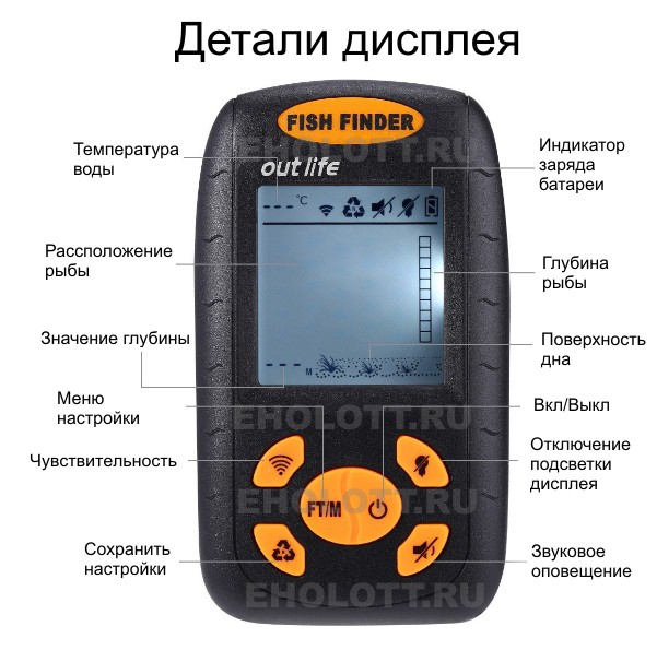 • Размер эхолота: 120*65*30 мм