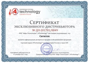 Сертификат эксклюзивного дистрибьютора