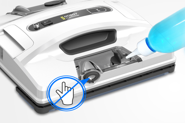 В резервуары для воды удобно заливать дистиллированную воду или чистящее средство HOBOT используя фирменную бутылочку, которая идет в комплекте с роботом.