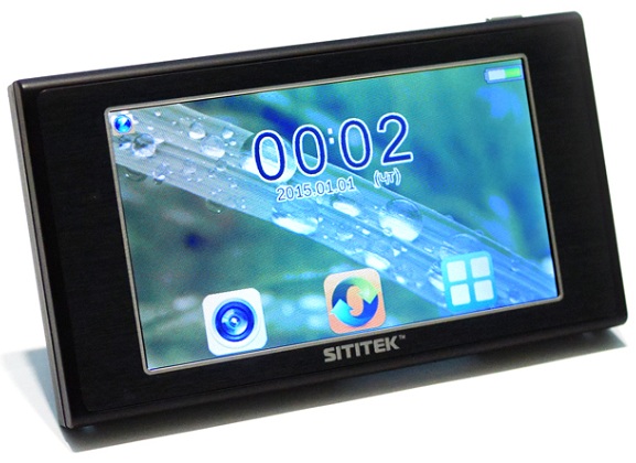 Видеоглазок "SITITEK Safebox" имеет внешний модуль камеры, в который встроен звонок, ИК-подсветка и датчик движения, который активирует фотосъемку с сохранением файлов на флеш-карту. Внутренний модуль оснащен сенсорным экраном диагональю 4.7". Питание системы осуществляется от сети 220 В и резервного аккумулятора емкостью 2400 мА/ч.