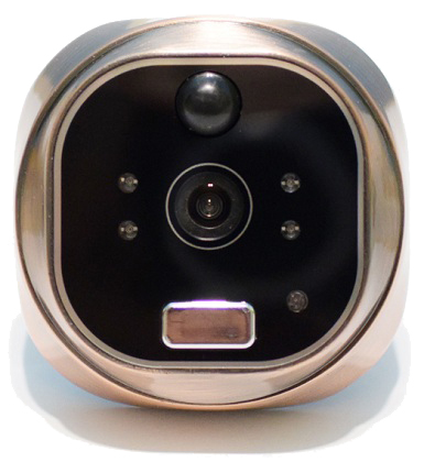 • Внешняя часть видеоглазка включает в себя камеру разрешением 1 Мп, звонок, микрофон, динамик, ИК-подсветку, датчики движения и освещенности.
